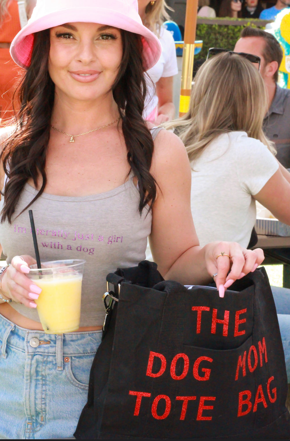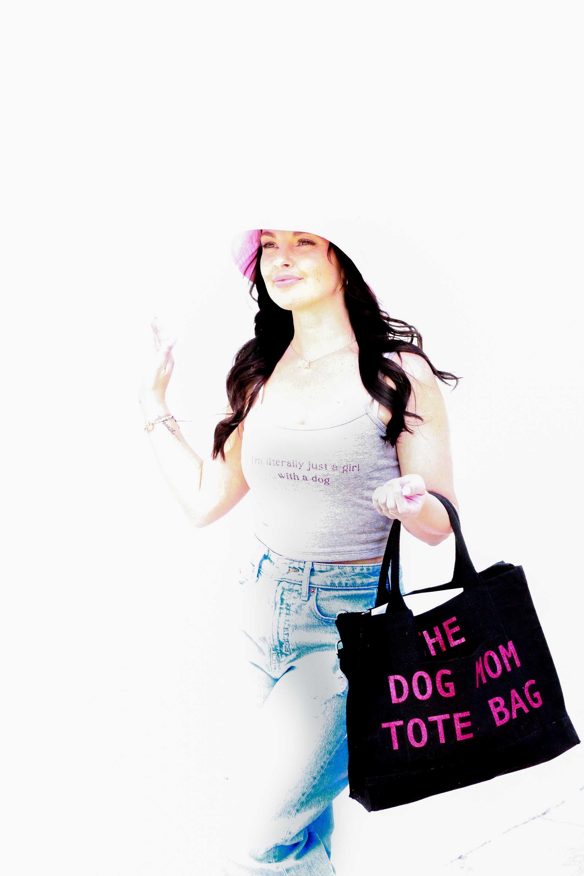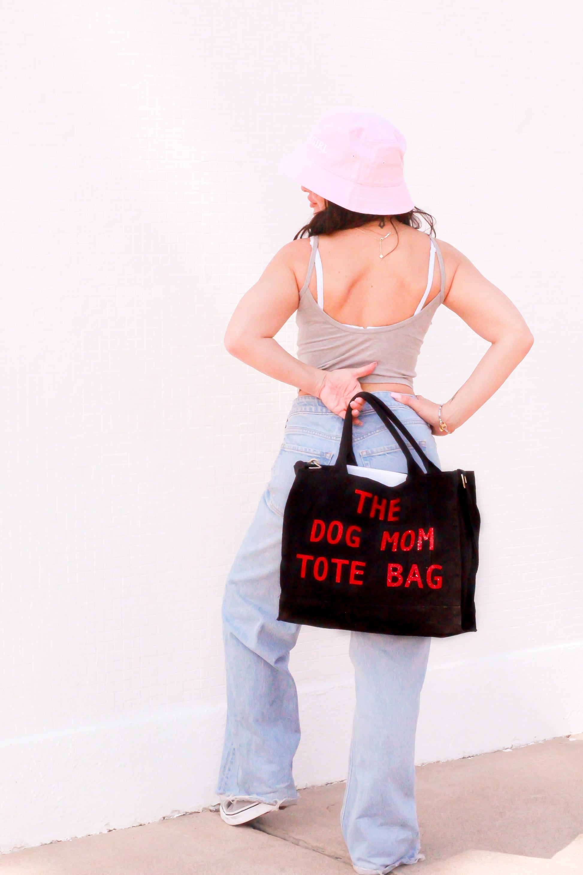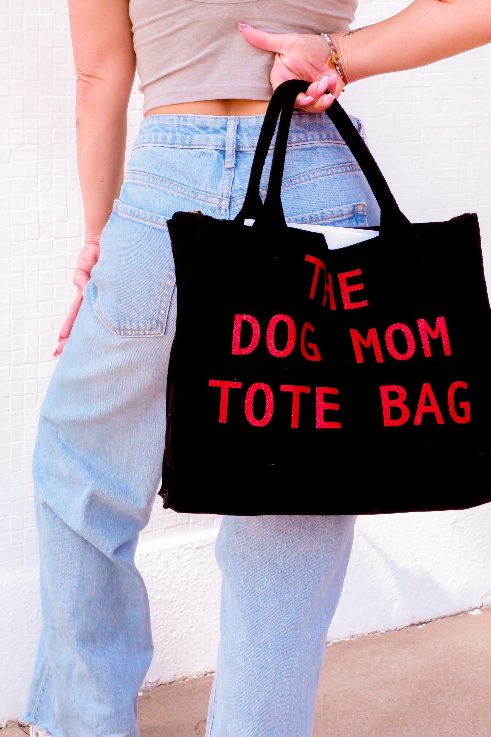Show off your dog mom pride in style with The Dog Mom Tote Bag! Crafted from durable black canvas, this chic and functional tote features eye-catching red sparkly lettering that adds just the right touch of glam. Whether you're heading to the dog park, running errands, or packing treats for your pup, this bag has you covered.