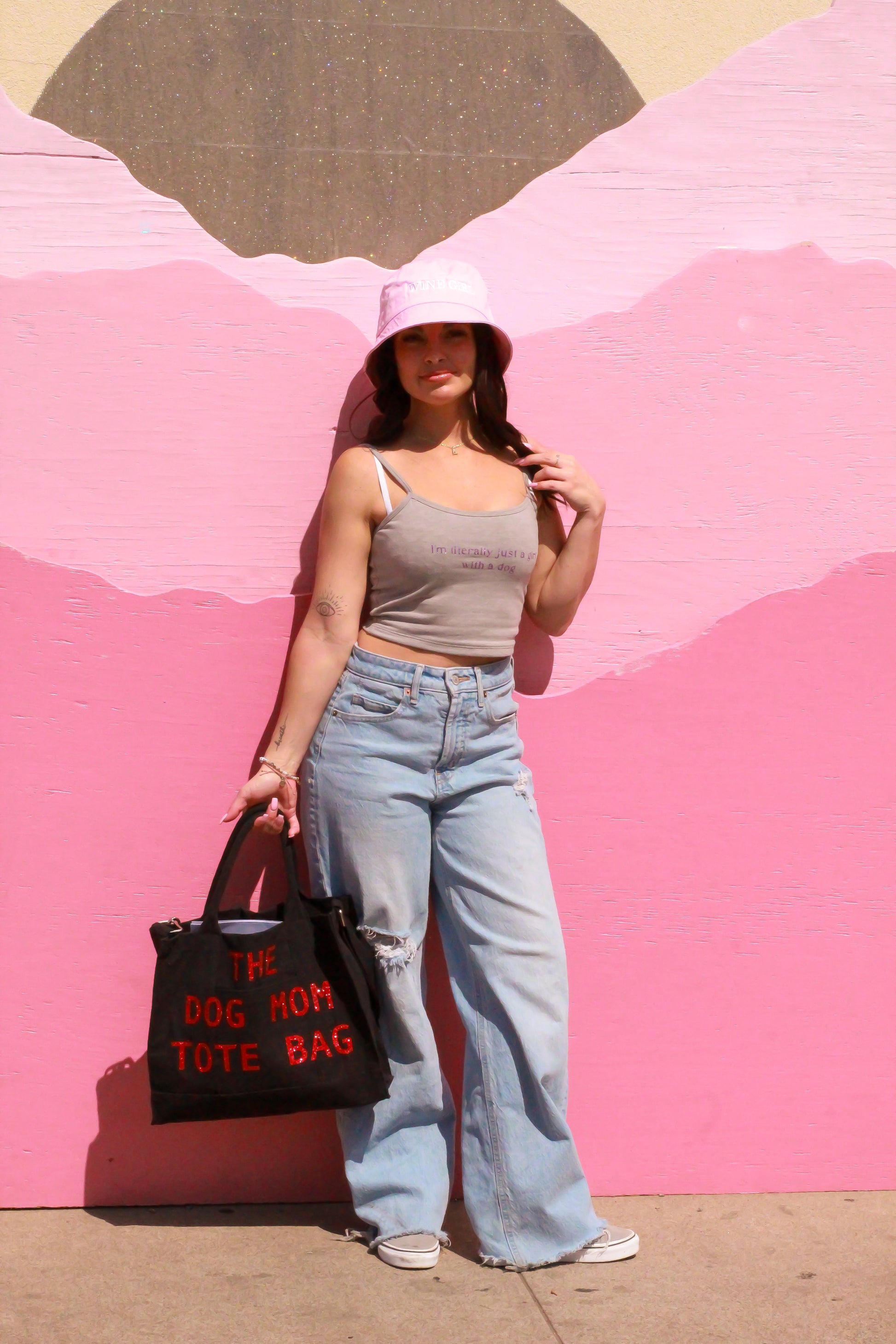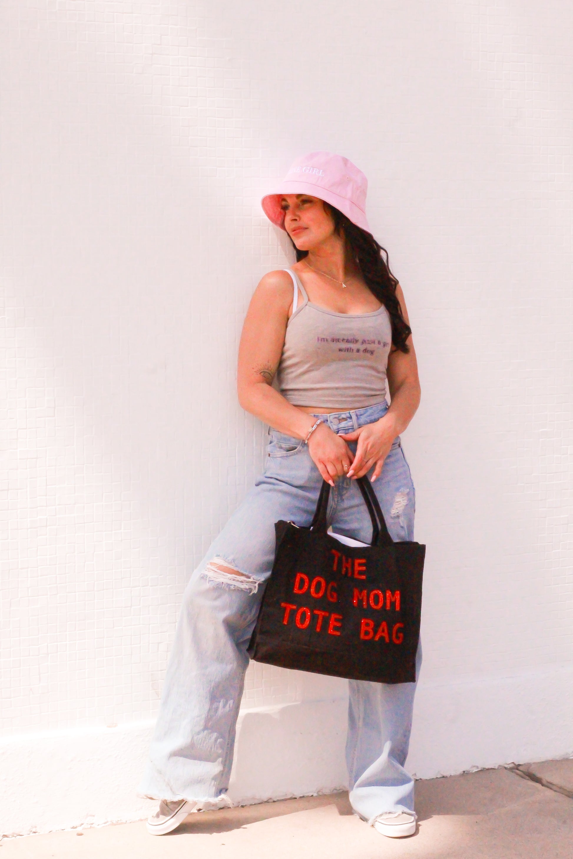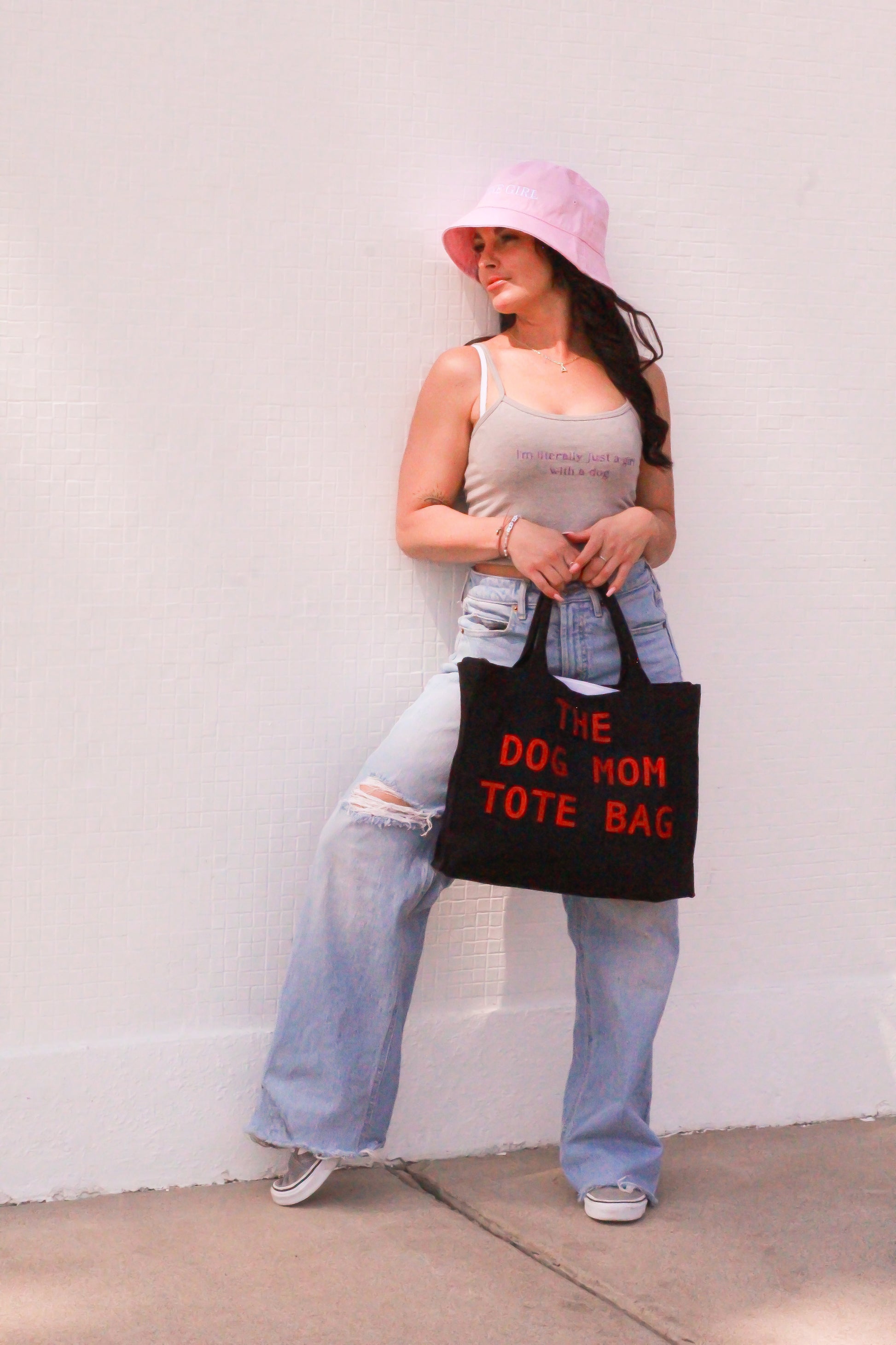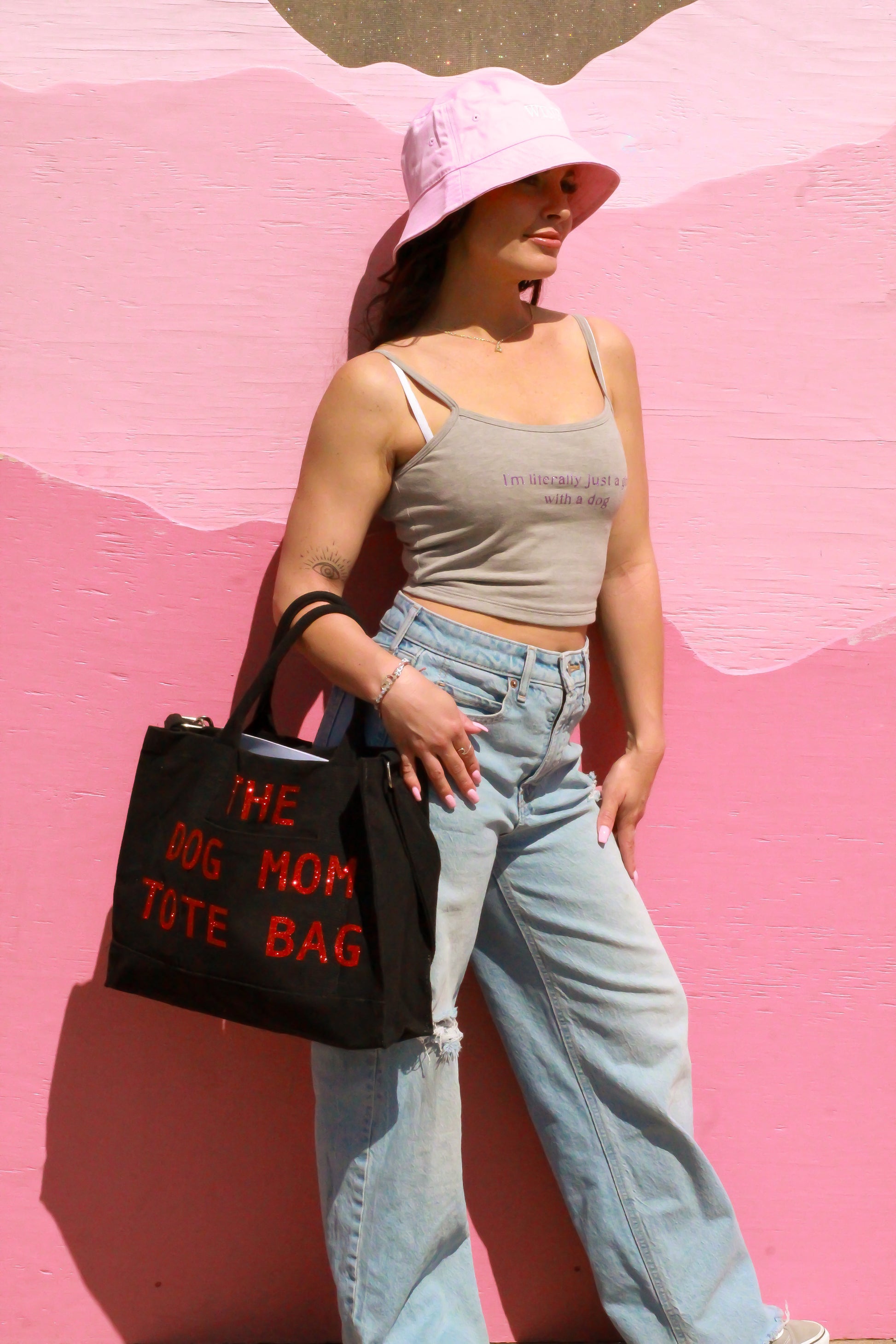 Show off your dog mom pride in style with The Dog Mom Tote Bag! Crafted from durable black canvas, this chic and functional tote features eye-catching red sparkly lettering that adds just the right touch of glam. Whether you're heading to the dog park, running errands, or packing treats for your pup, this bag has you covered.