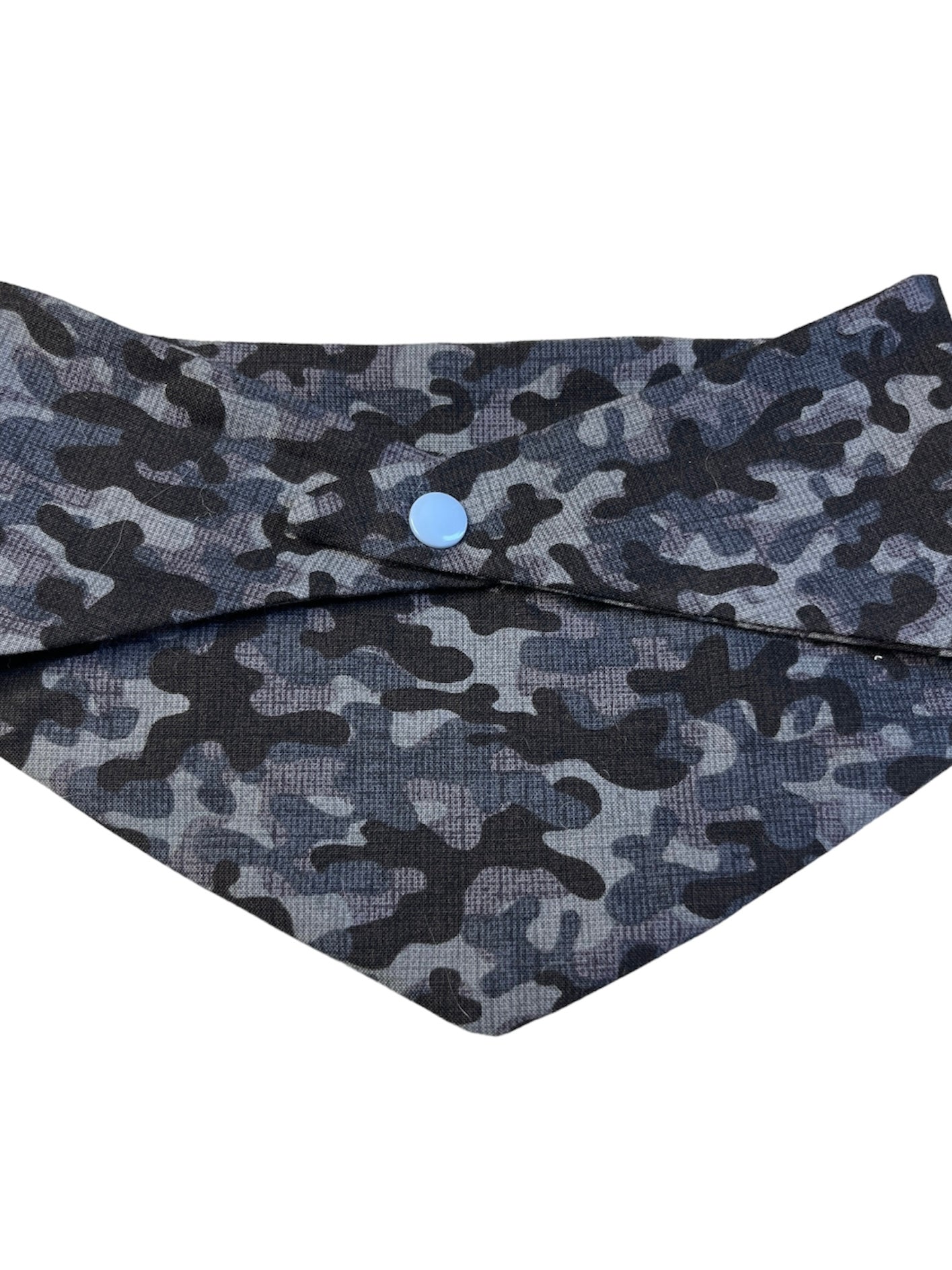 Add a touch of attitude to your pup's wardrobe with this stylish black and grey camo dog bandana. Made from soft, breathable cotton fabric, it ensures comfort for your pet while making a bold statement. The bandana features Too Spoiledembroidered in a chic, eye-catching font, showcasing your pet’s playful personality. With a curved neckline for a perfect fit and a convenient button closure, it’s easy to put on and take off. Whether your dog is lounging in luxury or strutting the streets, this camo bandana is the perfect accessory for any spoiled pup who loves to turn heads!